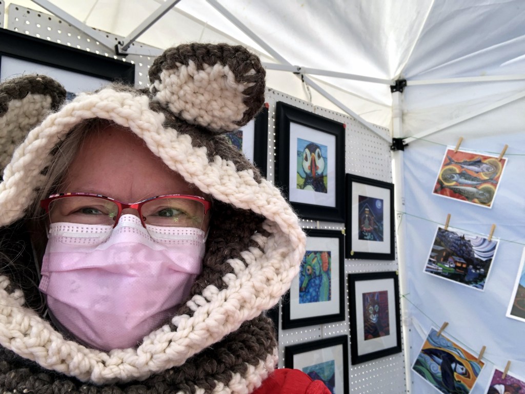 Kelley started out setting up at local artisan markets and craft shows. She joined the Saint John Art Club and through it and markets, met many like-minded folks who were a wealth of information for a budding artist. Scouring social media for local events, she came across oppourtinities like Discover Saint John’s Salmon Run (a public art installation), the Canada 150 Art Aquisition Program, and ArtsLink NB’s CATAPULT, a business accelerator program designed for artists.